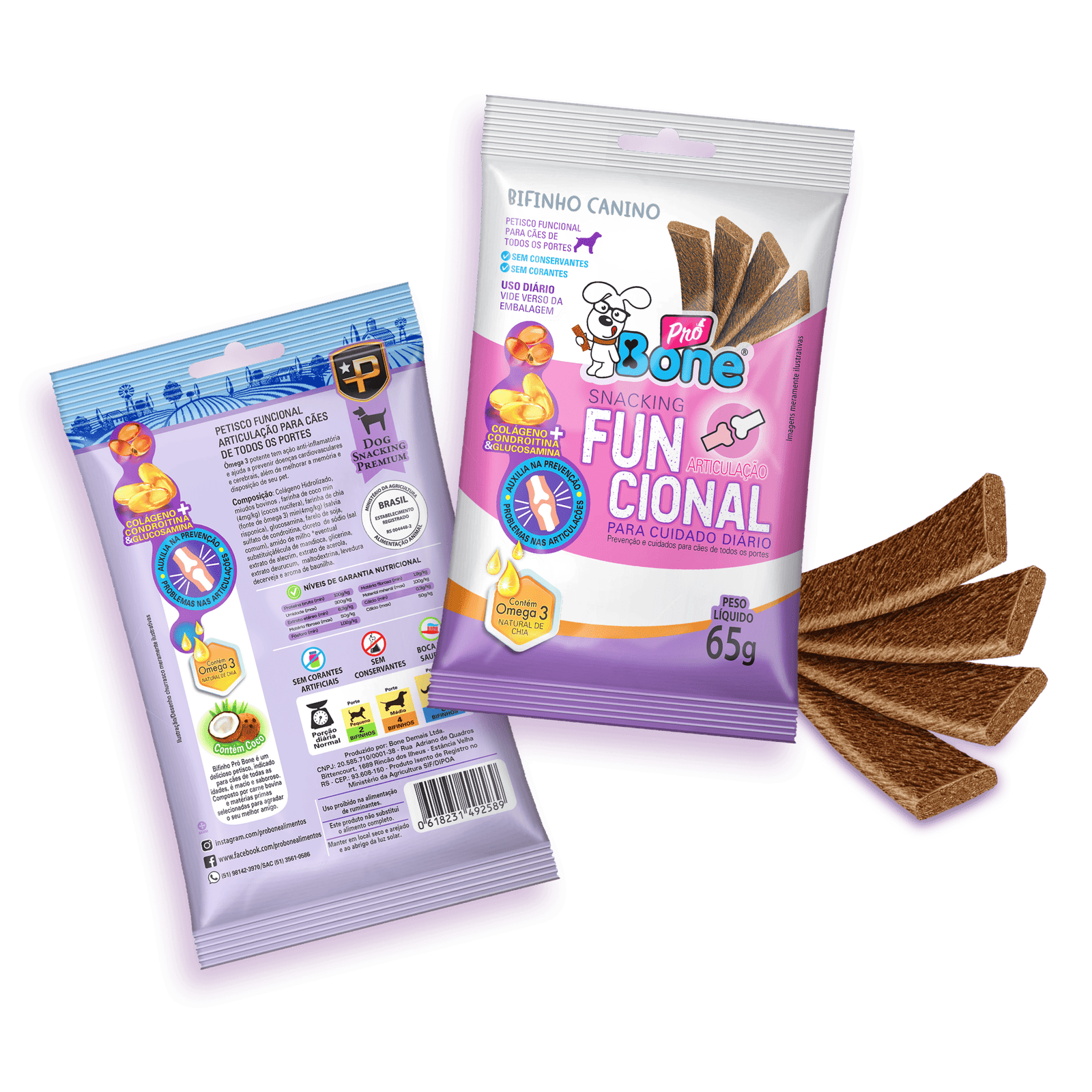 Bifinho Pró Bone é um delicioso petisco, indicado para cães de todas as idades, é macio e saboroso. Composto por carne bovina e matérias primas selecionadas para agradar o seu melhor amigo.