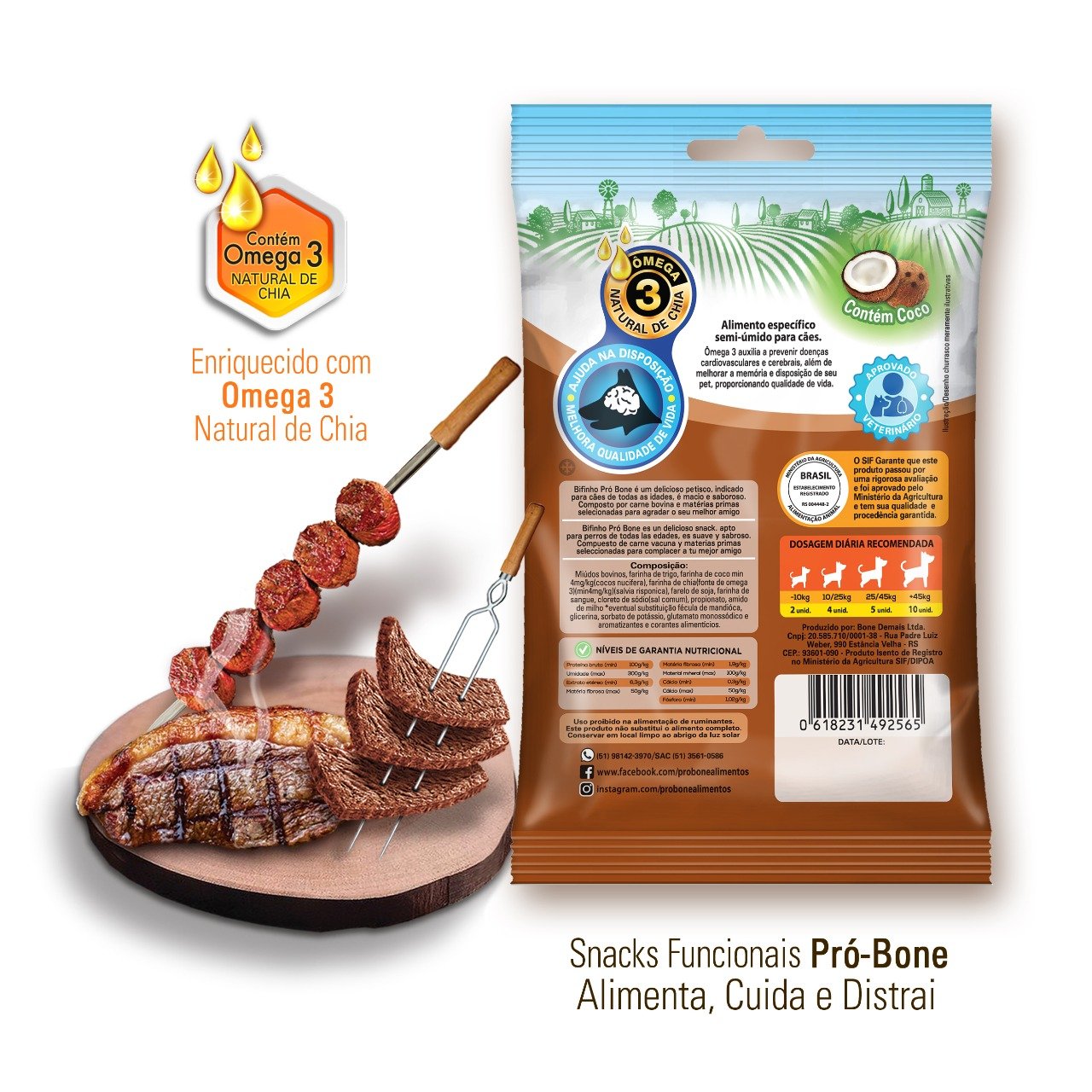 Bifinho Pró Bone é um delicioso petisco, indicado para cães de todas as idades, é macio e saboroso. Composto por carne bovina e matérias primas selecionadas para agradar o seu melhor amigo.