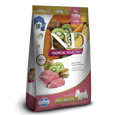 Ração N&D Tropical Selection Cães Adultos Mini Suíno e Cereais 2 kg + 500g Grátis